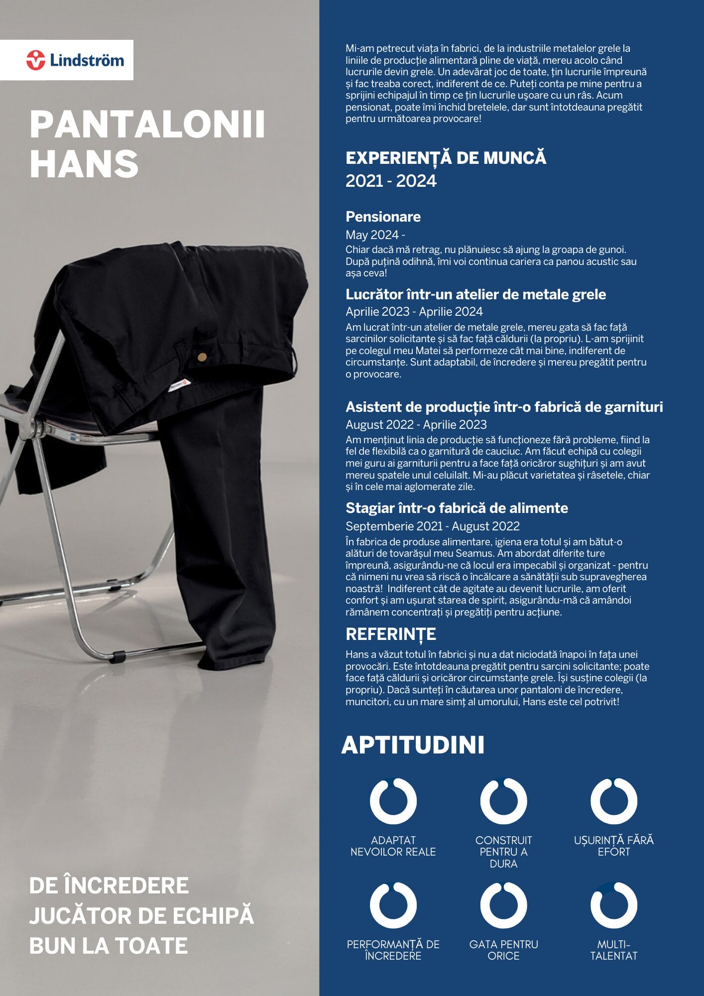 Hans este un om adevărat , cu o experiență îndelungată de lucru în diferite fabrici. Este de încredere și dur, totuși un prieten adevărat care te va sprijini mereu.