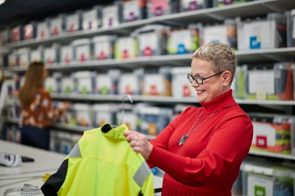 Every year, we repair around 4.5 million pieces of workwear. During the design phase, we assess repairability with laundry teams, visiting laundries to confirm whether a product can be easily repaired using their machinery.